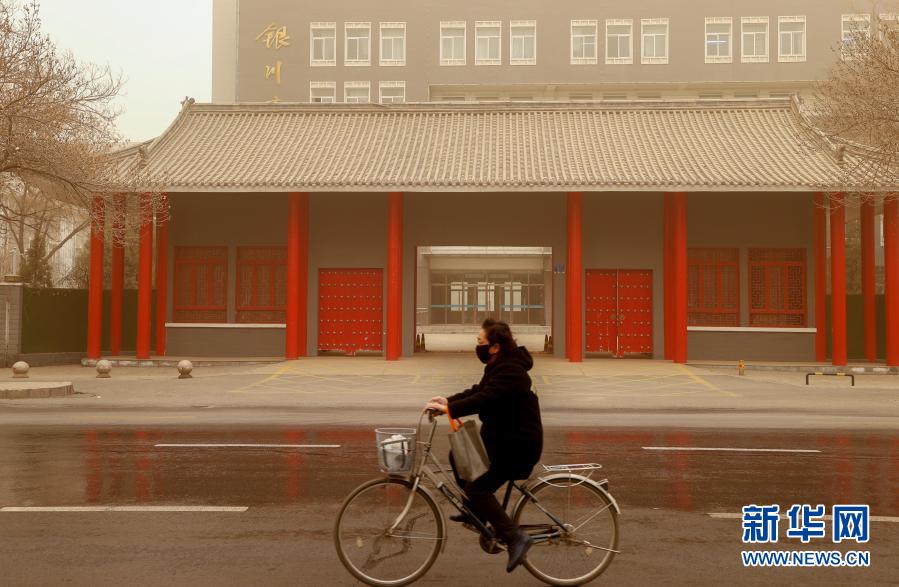 3月15日,在寧夏銀川市興慶區(qū)文化街,市民在沙塵中騎行。當日,我國北方多地出現(xiàn)沙塵天氣。新華社記者 楊植森 攝