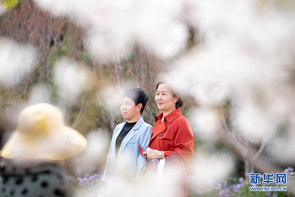 4月7日,游人在山西省太原市玉泉山城郊森林公園拍照留念。近日,山西省太原市玉泉山城郊森林公園栽植的近25萬(wàn)株各類(lèi)櫻花競(jìng)相盛開(kāi),吸引不少市民前來(lái)觀(guān)賞。新華社記者 楊晨光攝