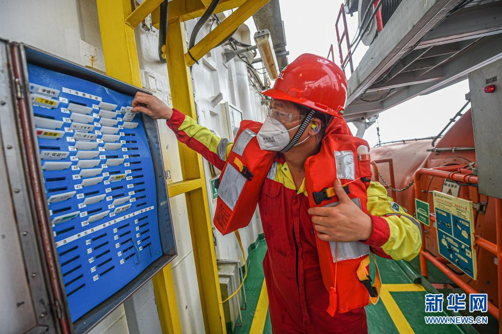 4月25日,工人在中國海油樂東15-1氣田上進(jìn)行應(yīng)急演練。