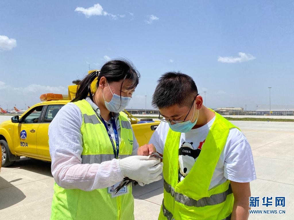 鳥(niǎo)擊防范員辛?xí)苑迹ㄗ螅┖屯抡疹欨B(niǎo)類(資料照片)。