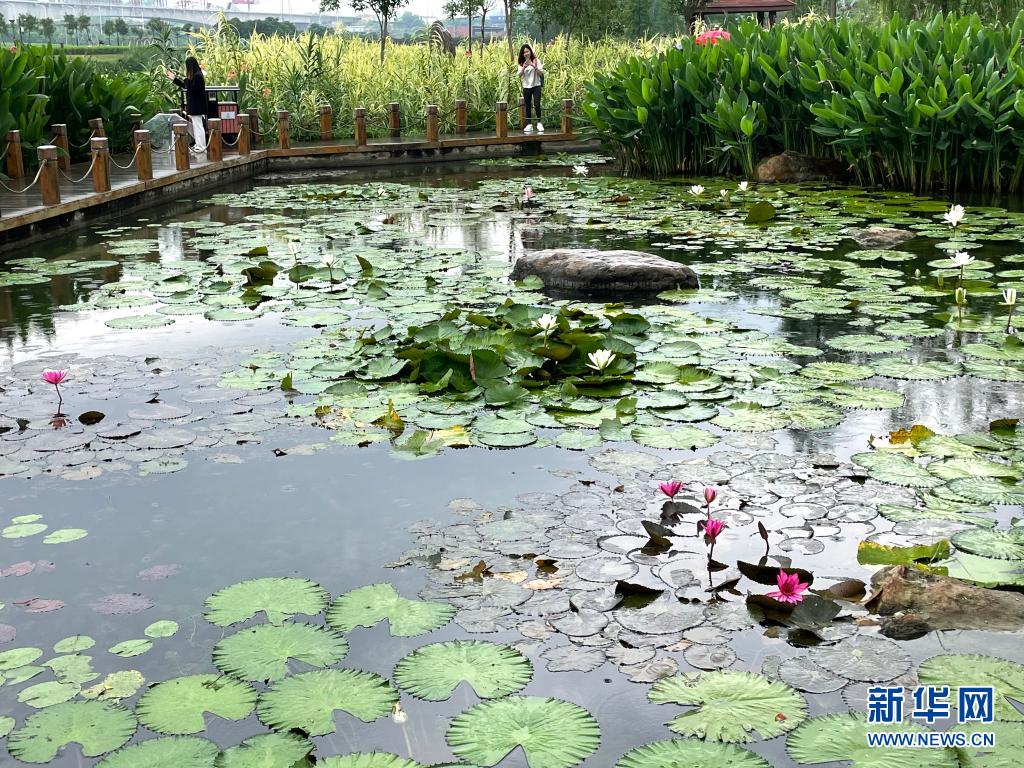 立夏時(shí)節(jié),廣西南寧市那考河濕地公園內(nèi)草木吐翠、鮮花斗艷,一派繁茂景象。