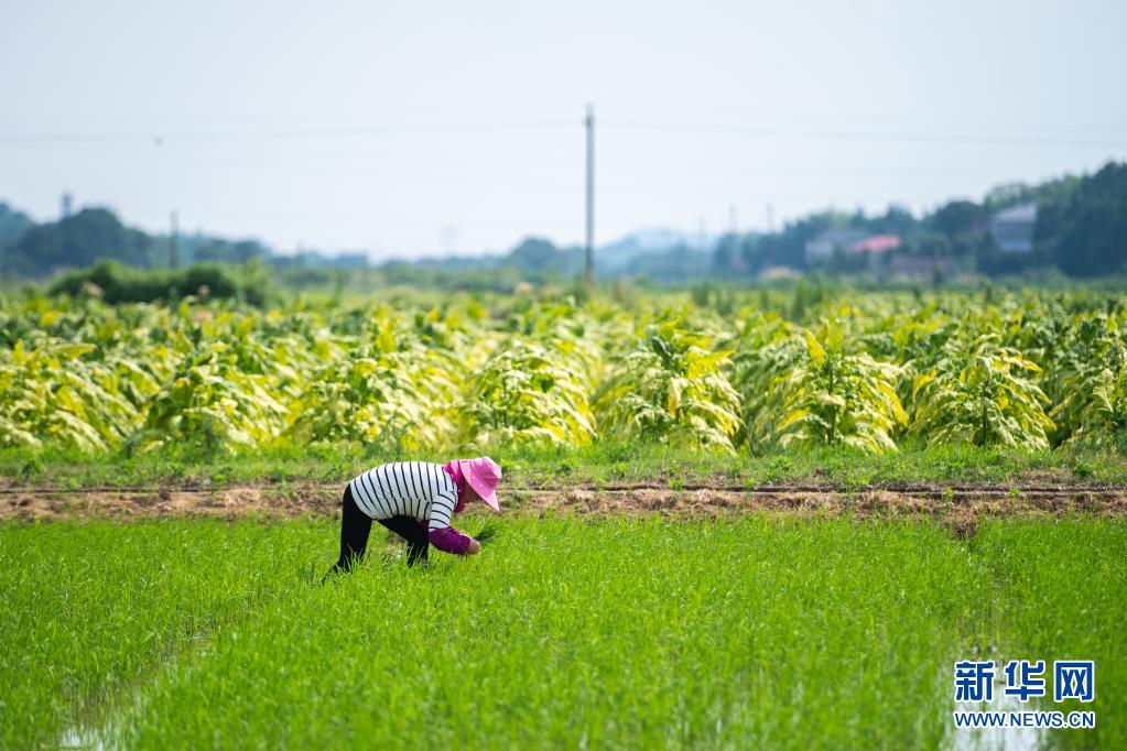 6月26日,湖南瀏陽(yáng)龍伏鎮(zhèn)新開村村民在田間除草。