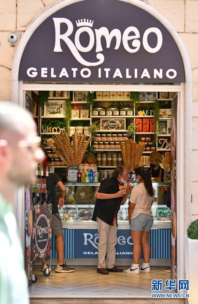 7月11日,人們?cè)谝獯罄_馬的一家冰淇淋店內(nèi)消費(fèi)。