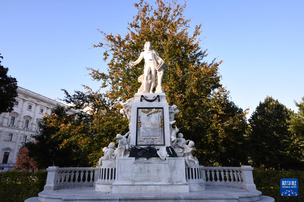 这是9月7日在奥地利维也纳拍摄的莫扎特纪念碑。