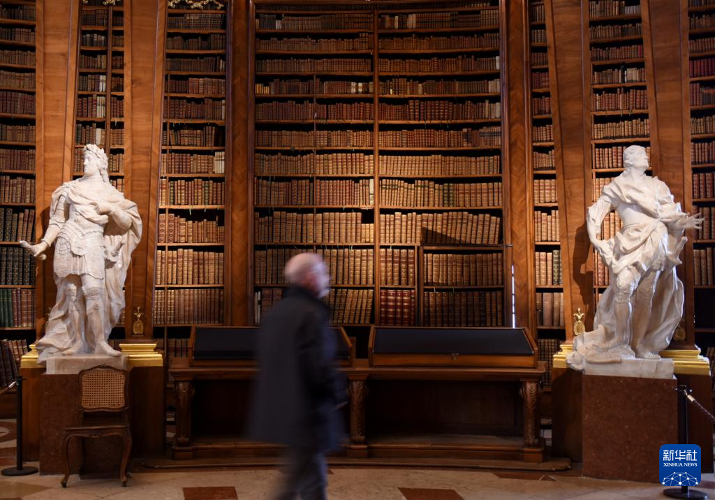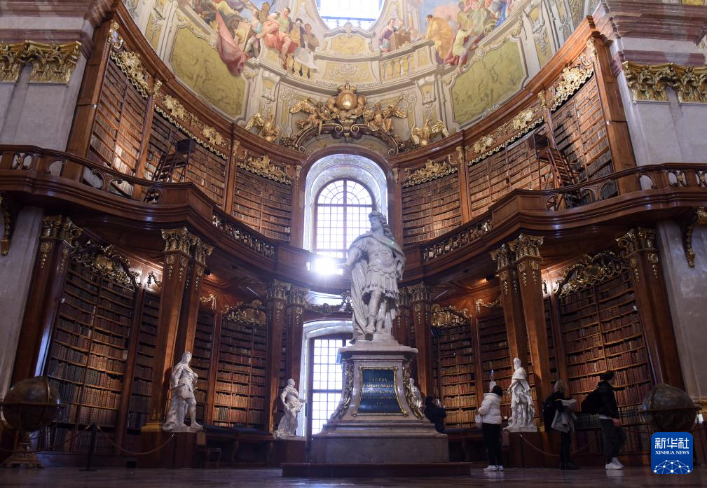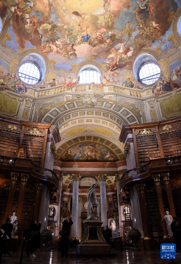 11月7日,游客在位于奥地利维也纳的奥地利国家图书馆普隆克厅内参观。