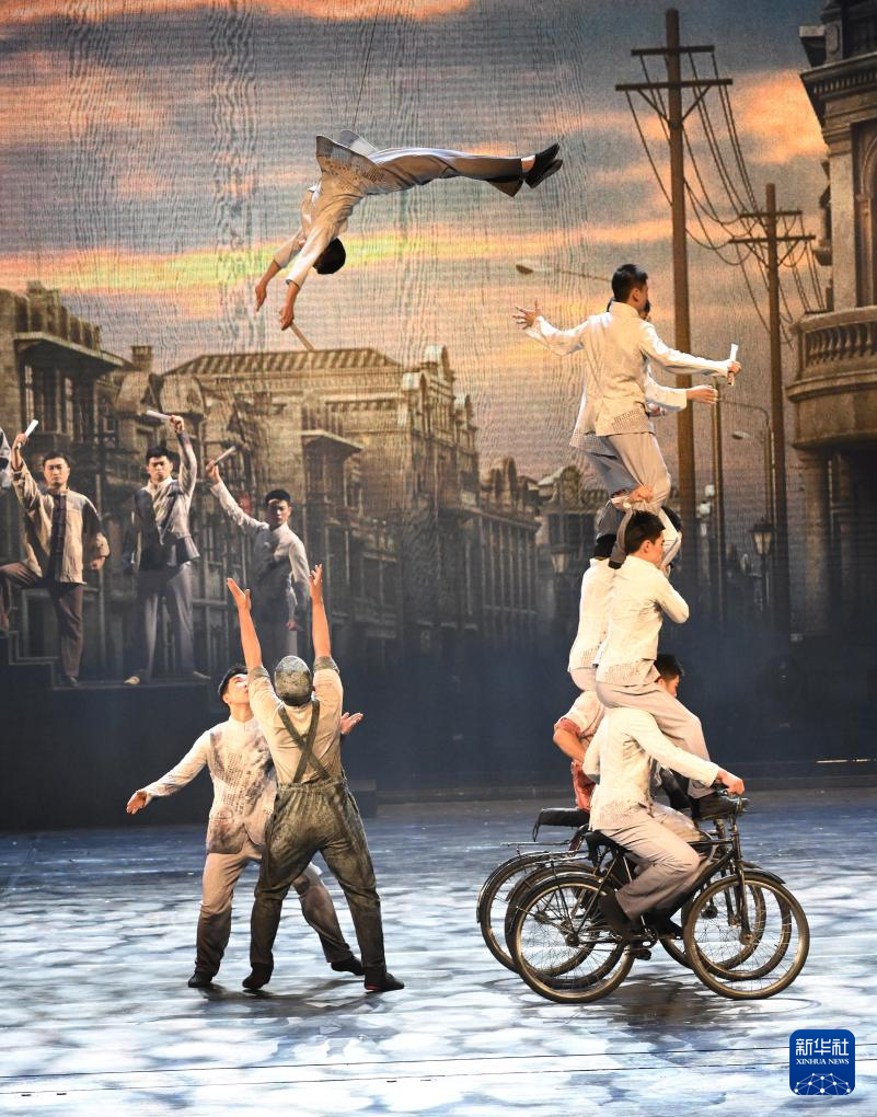 当日,由沈阳杂技演艺集团创作演出的杂技剧《先声》在北京上演。作品通过杂技与戏剧表演的编排与整合,运用多媒体技术,将舞台艺术和电影表现手法融为一体,讲述“九一八”事变中沈阳各界抗击日寇的故事。