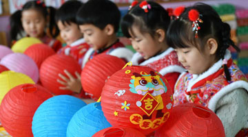 1月18日,四川省阆中市阆中古城,民间艺人和文艺工作者在表演节目欢度腊八节,喜迎农历新年。这是参演的小朋友在表演。