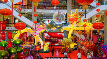 1月18日,市民在河北省唐山市海港经济开发区节庆年货市场选购迎春饰品。