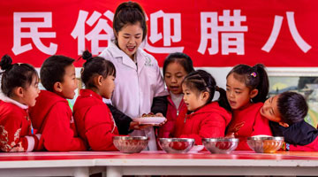 1月18日,浙江省湖州市长兴县太湖图影文化站举行“喜乐迎新过腊八”民俗文化活动,当地村民和孩子们欢聚一堂,写春联、做鱼圆、品尝腊八粥,感受传统民俗文化的独特魅力。