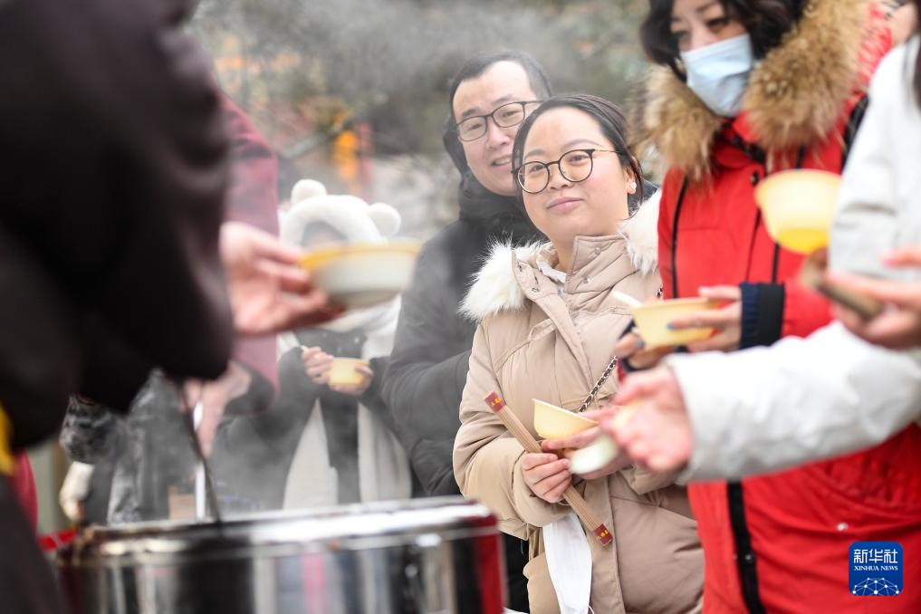 当日是农历腊月初八,人们有在这一天喝腊八粥的习俗。