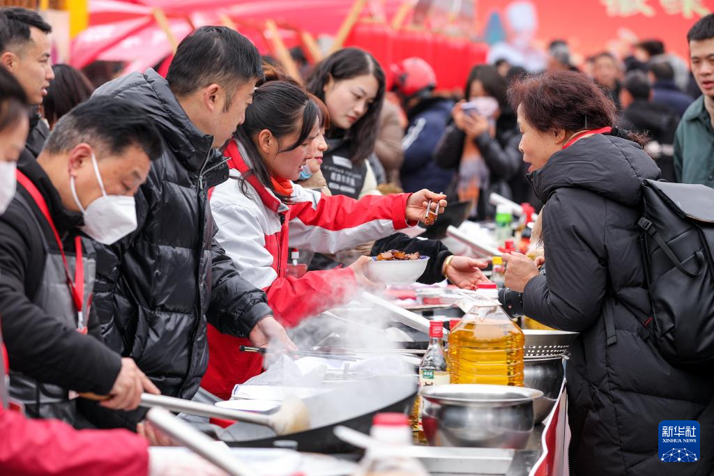 1月21日,在安徽省黄山市歙县徽州古城,人们在“就在徽州过大年”系列文化活动上体验美食。