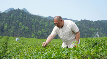 4月26日,游客在月河历史街区的特色黄酒店选购当地特产黄酒。