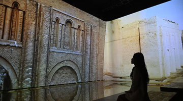 6月10日,在新疆阿克苏地区拜城县康其湿地公园,群众体验传统蹴鞠。