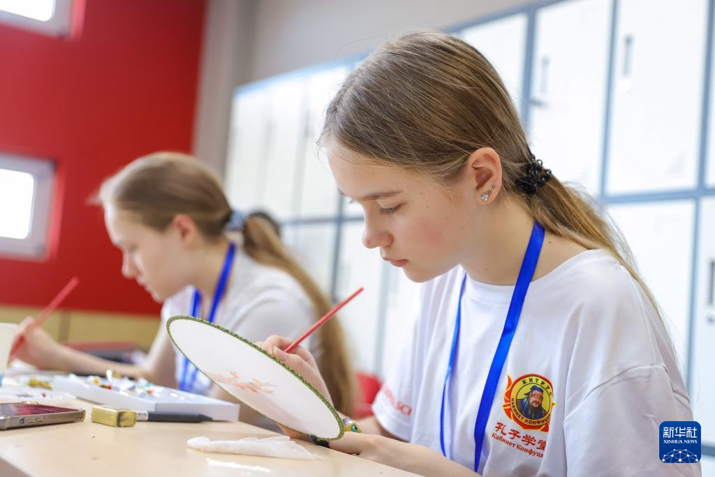 近日,以“汉语学习之旅”为主题的夏令营活动在山东青岛举行,来自俄罗斯俄中人文科技合作促进会孔子学堂的12名中学生,通过体验学习剪纸、彩墨脸谱、手绘团扇等“非遗”,近距离感受中国传统文化的魅力。
