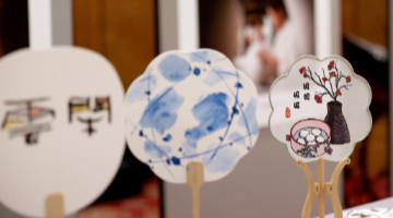 这是9月17日在英国伦敦拍摄的“天涯共此时——景秀China”景德镇文化和旅游宣传推广活动上的中秋主题工艺品。