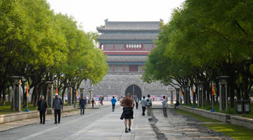 10月10日,艺人在宝丰县新世纪广场表演大调曲子。