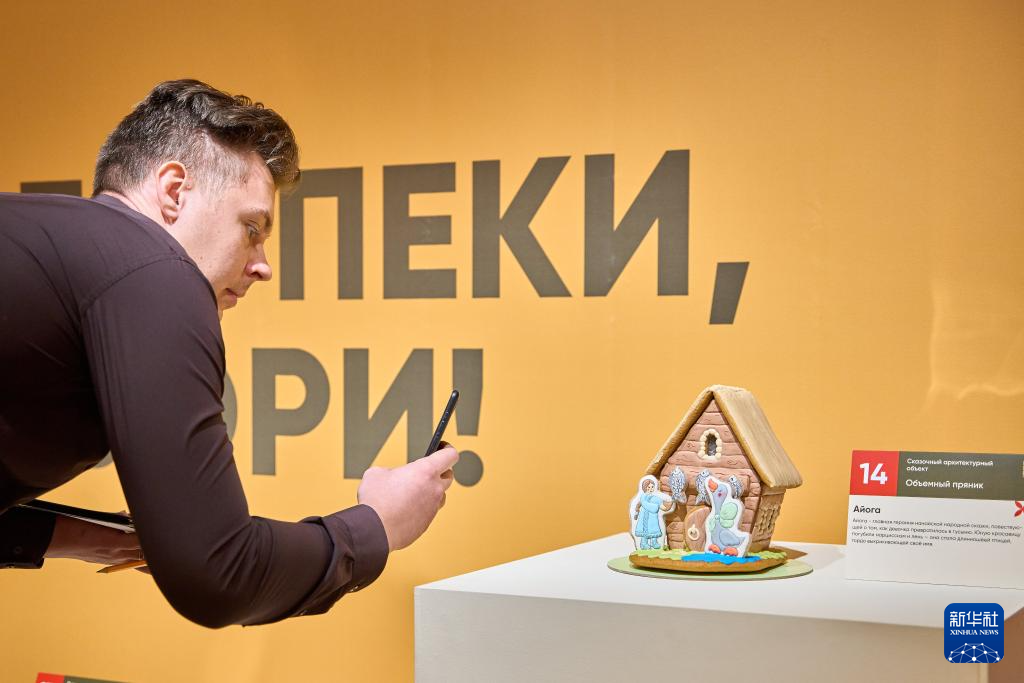 10月11日,在符拉迪沃斯托克姜饼节活动现场,一名工作人员展示姜饼。