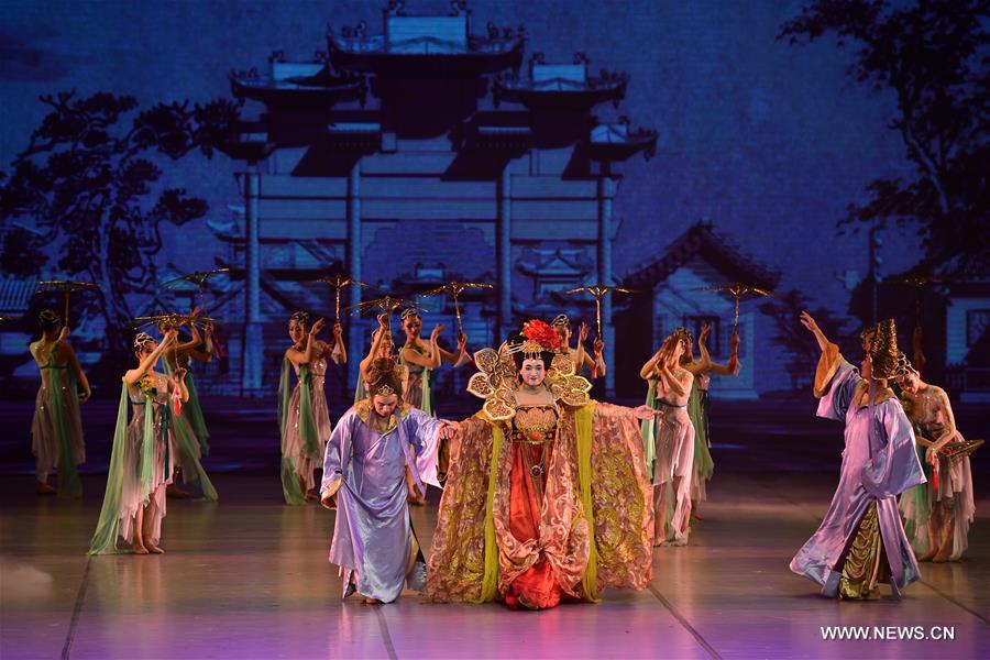 Dancers perform during a Chinese drama dance show named "To Meet the Grand Canal" in Cairo, Egypt on Nov. 28, 2017. (Xinhua/Ahmed Gomaa)