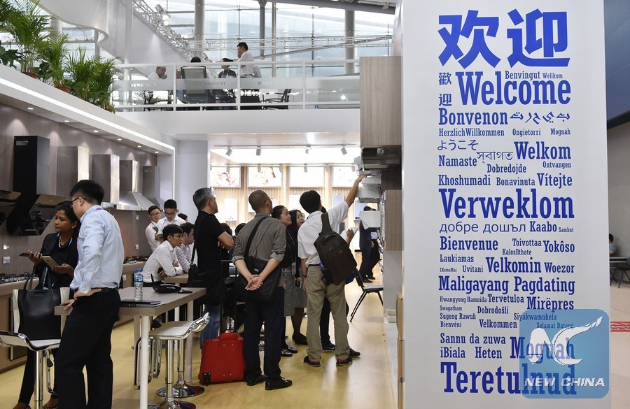 Traders attend the Canton Fair in Guangzhou, capital of south China's Guangdong Province, Oct. 15, 2017. (Xinhua/Liang Xu)
