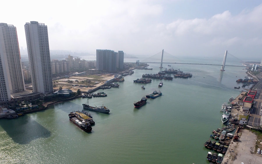Vessels anchor at Xingang Port in Haikou, capital of south China's Hainan Province, Dec. 26, 2016.(Xinhua/Zhao Yingquan)