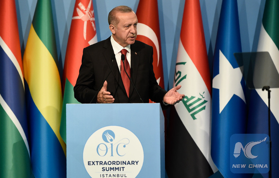 Turkish President Recep Tayyip Erdogan speaks during a press conference at the extraordinary summit of the Organization of Islamic Cooperation (OIC) in Istanbul on May 18, 2018. (AFP photo)