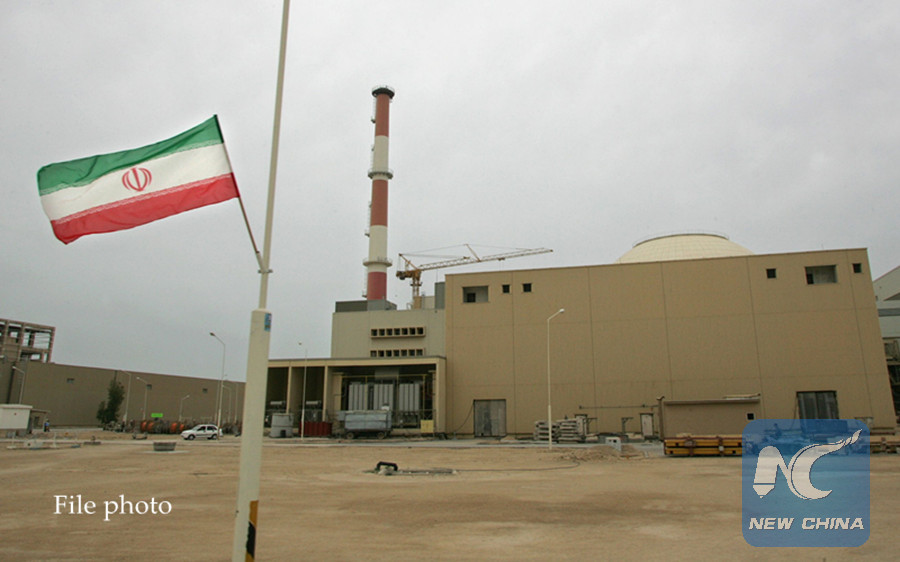 In this file photo taken on April 03, 2007, an Iranian flag is seen outside the building housing the reactor of the Bushehr nuclear power plant, in the Iranian port town of Bushehr, 1200 kms south of Tehran. (AFP photo)
