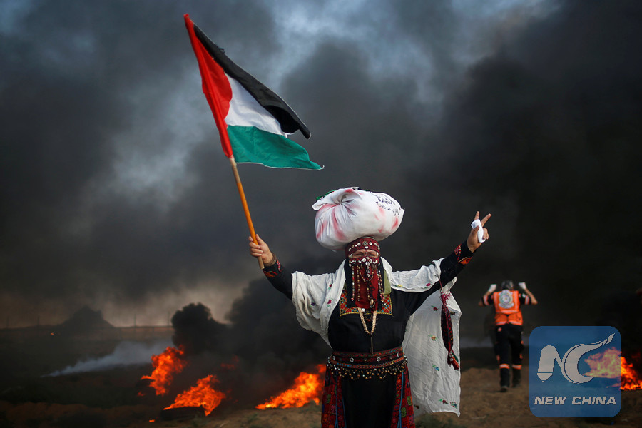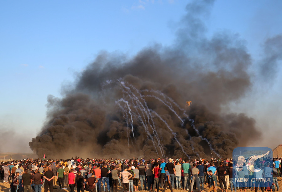 GAZA, Sept. 14 (Xinhua) -- At least three Palestinians were killed and hundreds injured on Friday afternoon during clashes with Israeli soldiers on the border between eastern Gaza Strip and Israel, the Gaza Health Ministry said.