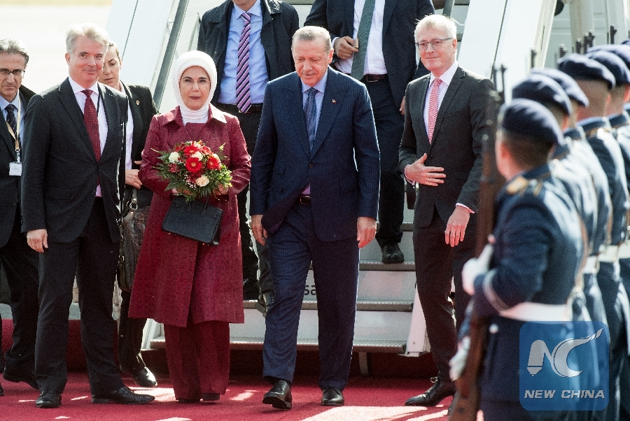 ANKARA, Sept. 27 (Xinhua) -- Turkish President Recep Tayyip Erdogan paid a state visit to Germany on Thursday after four years in a bid to restore deeply eroded relations and boost economic cooperation as tensions in Ankara-Berlin ties appear to have been eased.