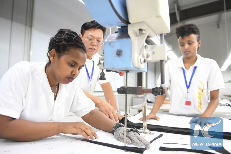 File photo shows an Ethiopian worker of ANTEX Fashion Group learns sewing skill at a plant in Huzhou, east China's Zhejiang Province, Aug. 30, 2018.(Xinhua/Weng Xinyang)