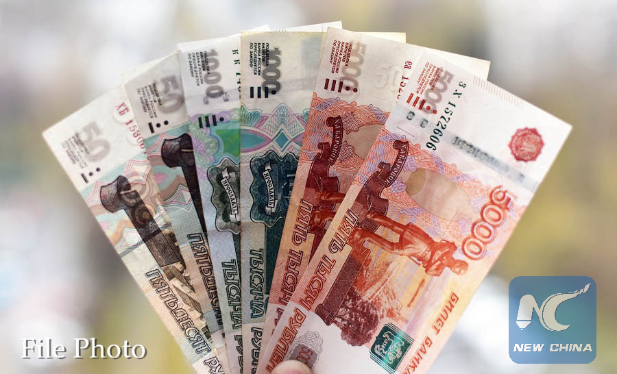 Russia's ruble banknotes are seen in this file photo taken on April 28, 2017. (Xinhua/Shi Hao)