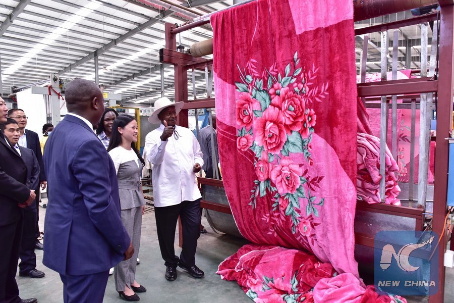 Ugandan President Yoweri Museveni visits a Chinese factory in Mukono, Uganda, March 9, 2019. Ugandan President Yoweri Museveni toured four Chinese factories in the central Ugandan district of Mukono, promising to lower the cost of production in a bid to benefit those doing business in this east African country. (Xinhua)