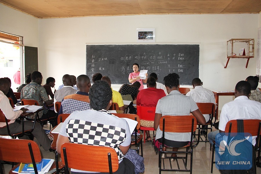 File photo shows a Chinese teacher at a Chinese language class for Ugandan students. (Xinhua/Zhang Gaiping)