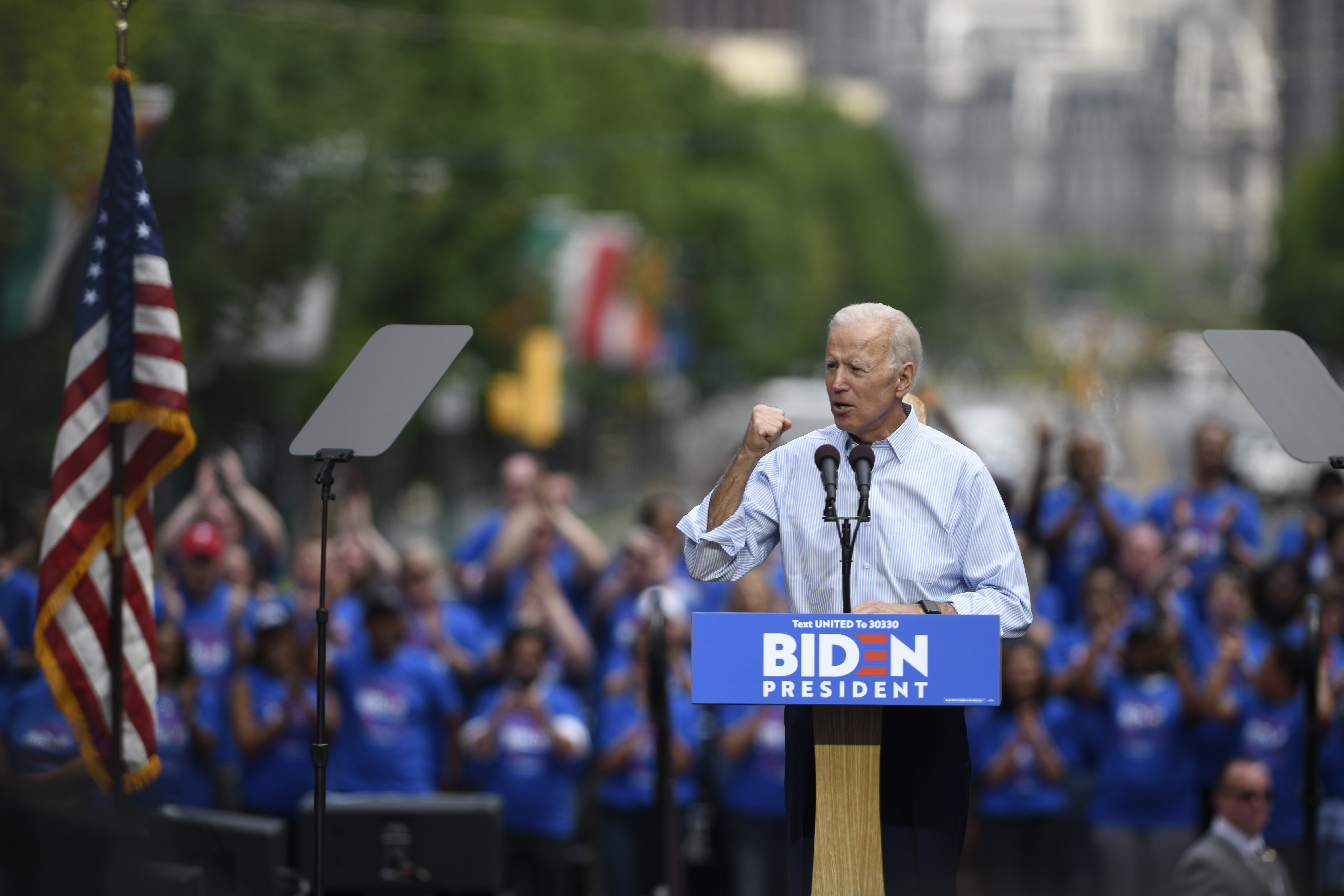 Former U.S. Vice President Joe Biden speaks during a rally in Philadelphia May 18, 2019. (Xinhua/Liu Jie)