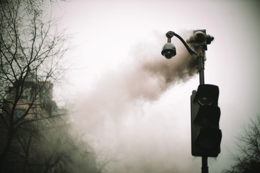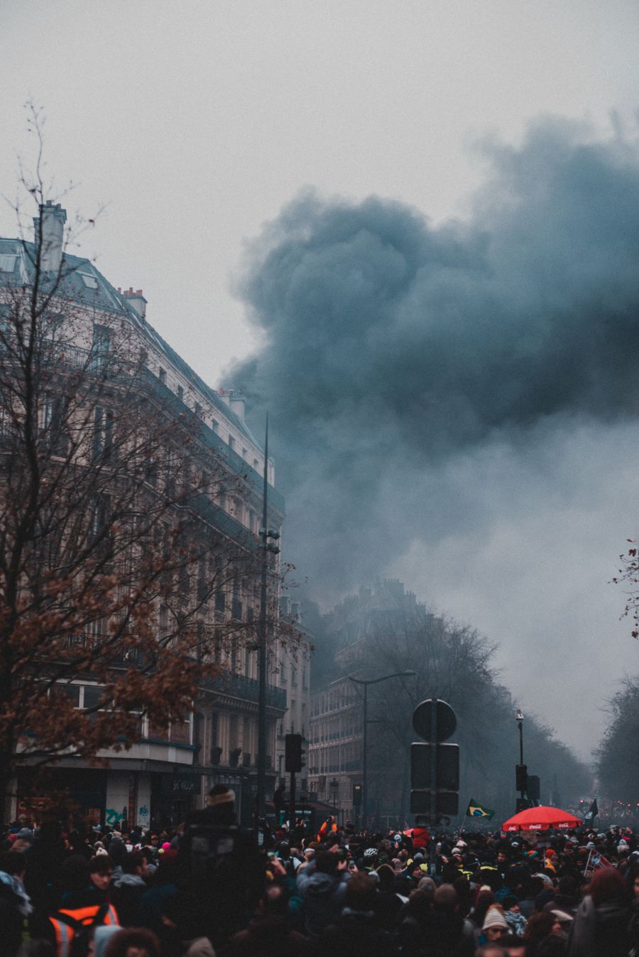 A destroyed traffic light during the demonstration in Paris, France. (Photo by Zi Yang/Xinhua)