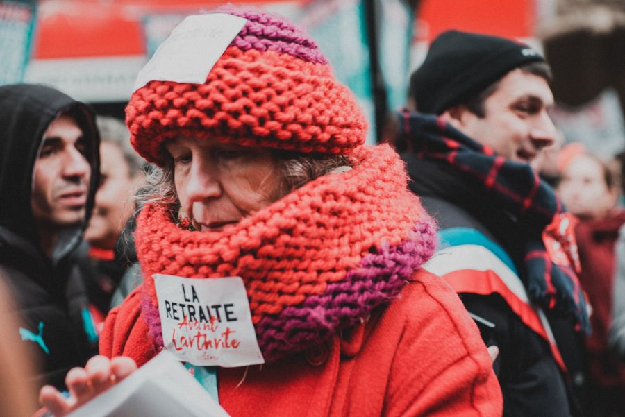 A woman takes part in a demonstration in Paris, France. (Photo by Yu Zhou/Xinhua)