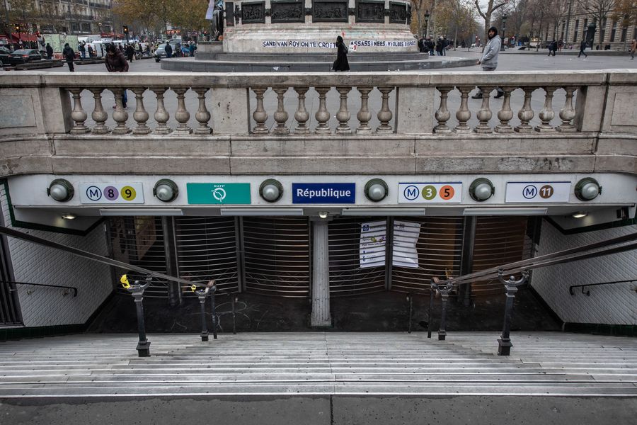 A closed metro station due to the strike in Paris, France. (Photo by Aurelien Morissard/Xinhua)