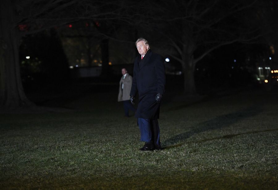 U.S. President Donald Trump arrives at the White House in Washington D.C. Dec. 19, 2019. (Xinhua/Liu Jie)