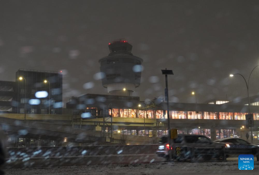 A snowstorm hit New York on Friday, which has caused flight delays and cancellations. (Xinhua/Zhang Fengguo)
