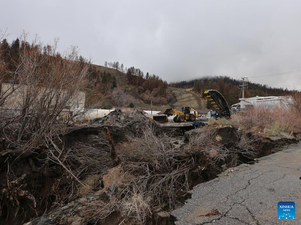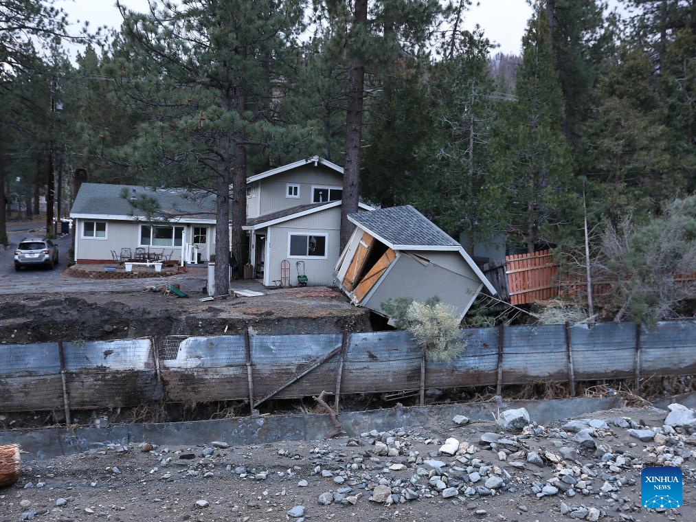 This photo taken on Dec. 25, 2025 shows an affected building in Wrightwood, San Bernardino County, California, the United States. Powerful winter storms have left at least four people dead and caused widespread damage across the U.S. state of California over the Christmas holiday week. (Photo by Qiu Chen/Xinha)