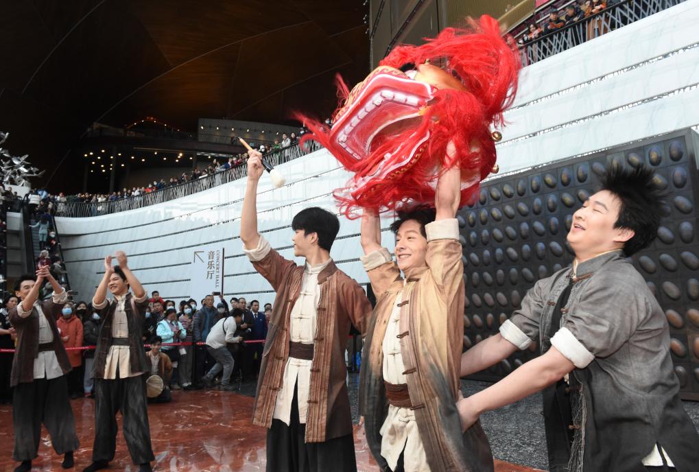 12月22日,演员在国家大剧院北门入口处敲响迎宾鼓,拉开活动序幕。新华社记者 罗晓光 摄