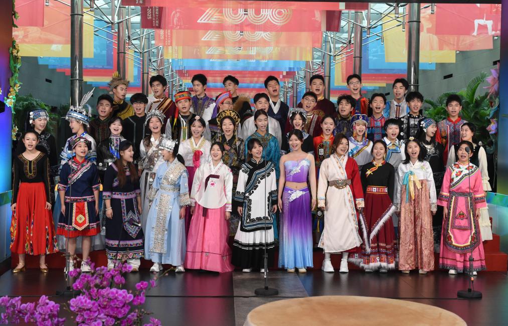 12月22日,青少年合唱团在国家大剧院北门入口处合唱迎宾。新华社记者 罗晓光 摄