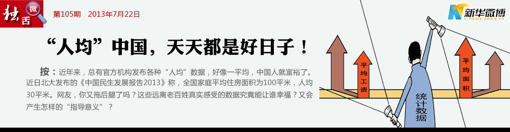 被“平均”的后果 這些遠離老百姓真實感受的“人均”數(shù)據(jù),除了增加老百姓的怨言,對社會的和諧進步又有何益處?而這些數(shù)據(jù)將會產(chǎn)生怎樣的“指導意義”,會帶來怎樣的“決策”?