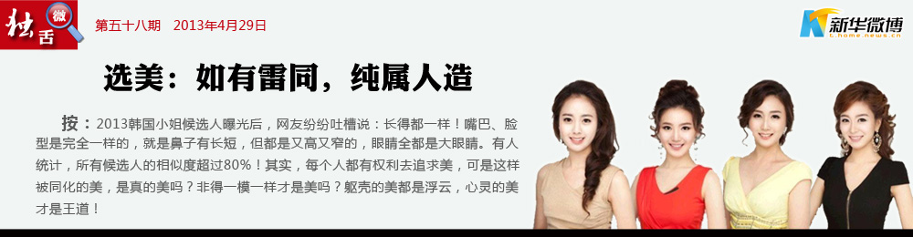 【選美?公然作弊?】 整容技術(shù)越來越先進,偽造美麗卻到了該反思的地步。韓國小姐的比賽分為真、善、美三個競賽部分?,F(xiàn)在看來,比賽已經(jīng)無法體現(xiàn)“真”這個部分了。