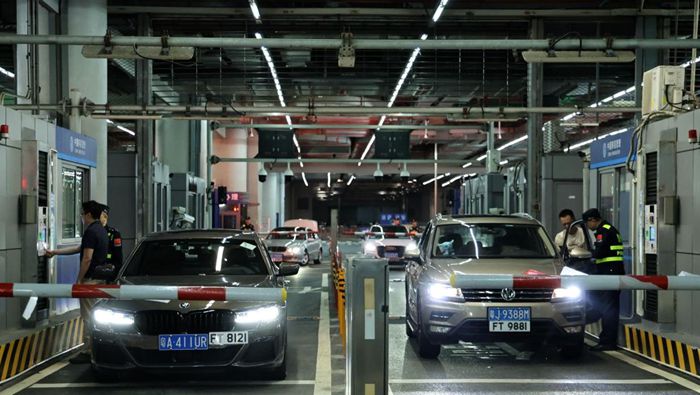 23日零時(shí),“粵車南下”入境香港市區(qū)政策正式實(shí)施,粵港澳大灣區(qū)互聯(lián)互通再添動(dòng)能。零時(shí)43分,首輛同時(shí)懸掛“FT”字頭的粵牌電動(dòng)汽車駛?cè)敫壑榘拇髽蛳愀劭诎秾偻ǖ?,車主彭先生與同車友人向等候的工作人員微笑致意。