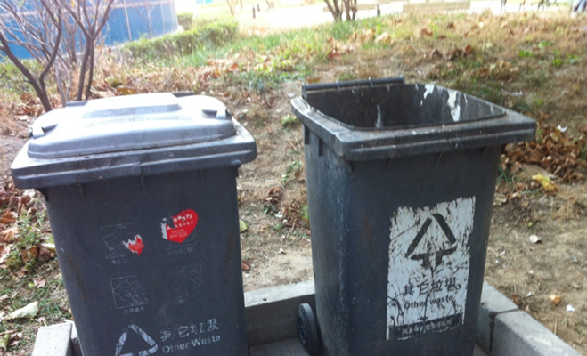 除了幾棵大樹(shù)之外,小區(qū)基本上沒(méi)有綠化,以前貌似種過(guò)綠草的地方,如今枯黃一片。垃圾桶早就已經(jīng)破舊不堪,在殘留的文字上,依稀可見(jiàn)當(dāng)時(shí)也曾嘗試過(guò)的垃圾分類。小區(qū)內(nèi)沒(méi)有兒童休息場(chǎng)所、也沒(méi)有健身器材,只是設(shè)有幾個(gè)孤零零的座椅。