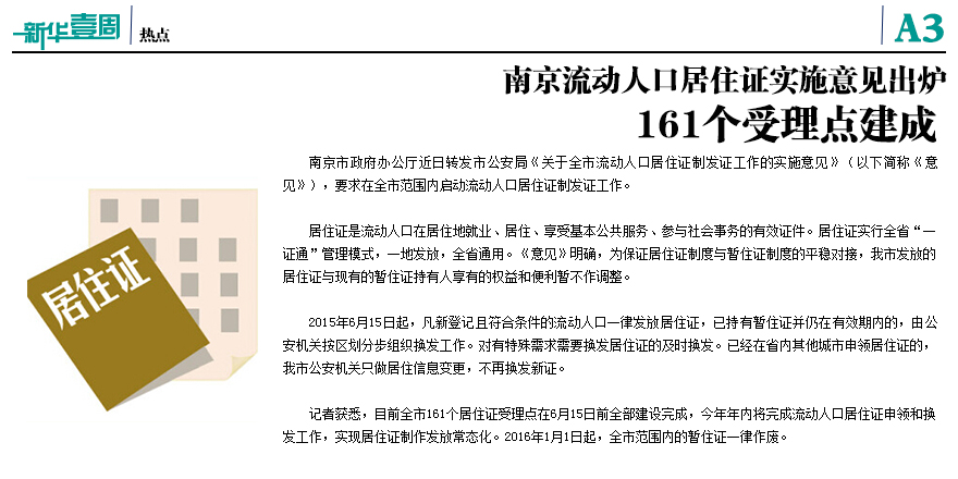 南京流動人口居住證實施意見出爐