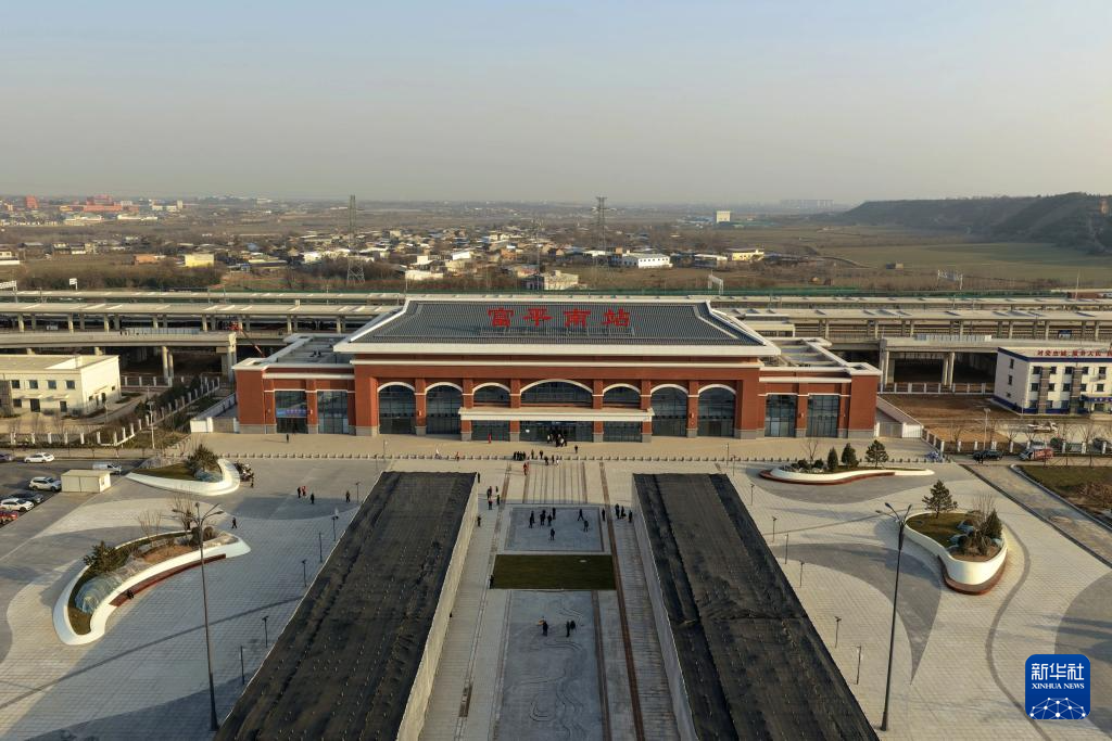 12月24日拍摄的西延高铁富平南站(无人机照片)。新华社记者 邢广利 摄