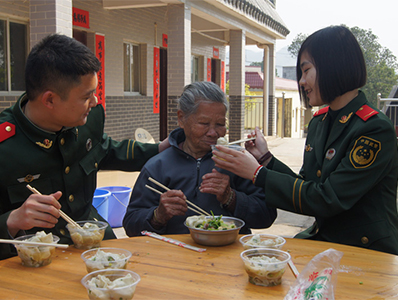 ??? 廣西欽州邊防支隊圩埠邊防派出所官兵在2015年春節(jié)前夕,帶著節(jié)日的祝福來到轄區(qū)“廣西五保第一村”——西顯五保村看望慰問“五保戶”老人。這個所官兵為老人們帶去了豬肉、活雞、水果等慰問品,并送上慰問金,為老人們送去了真誠的祝福和節(jié)日的問候……【詳細】