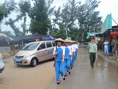 廣西欽州三娘灣邊防派出所聯(lián)合景區(qū)女民兵開展治安巡邏