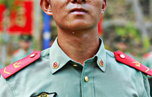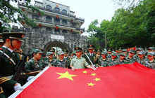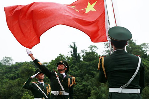 ????“出旗!”金黃綬帶宛若飛霞,長統(tǒng)軍靴潔凈锃亮,伴著“咔咔咔”的正步聲,一支身著橄欖綠軍裝的國旗護(hù)衛(wèi)隊(duì)邁著矯健而堅(jiān)定的步伐,從中越邊境廣西友誼關(guān)城樓緩步邁出。
